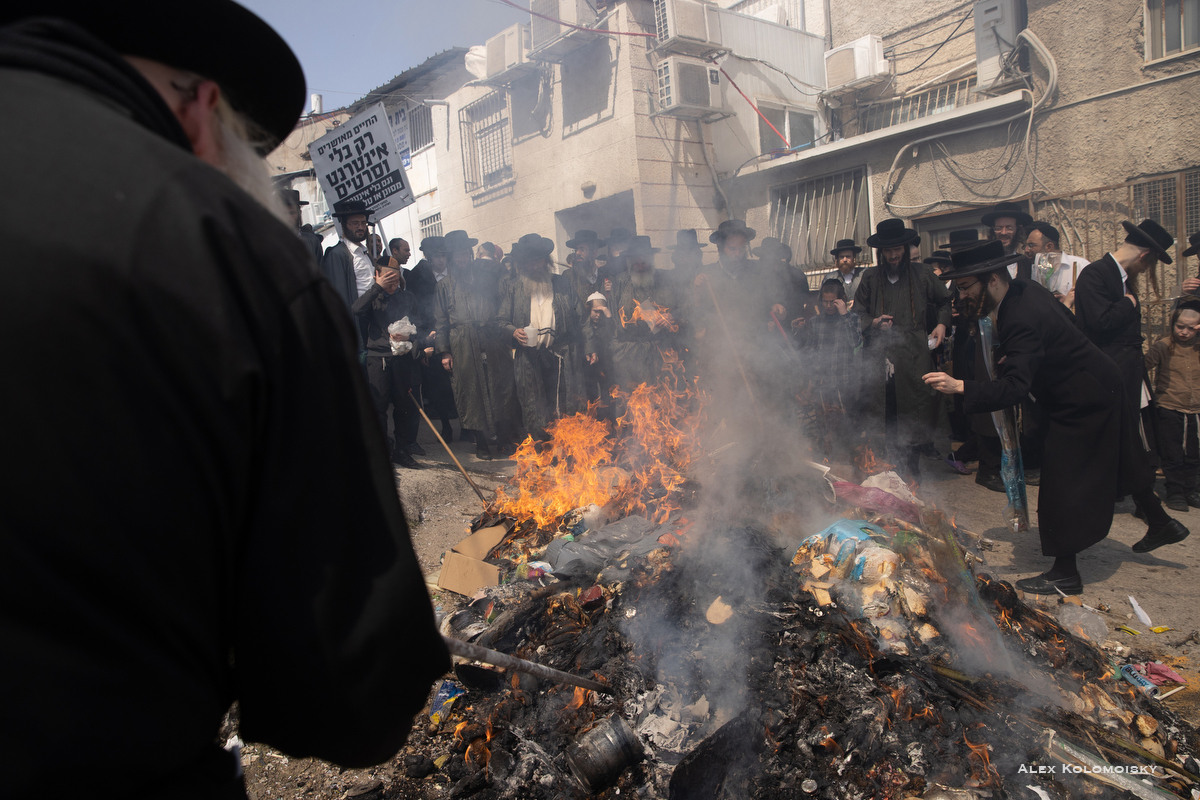 Сжигание квасного (хамец) перед праздником Песах. Ультраортодоксальный район Меа Шеарим в Иерусалиме