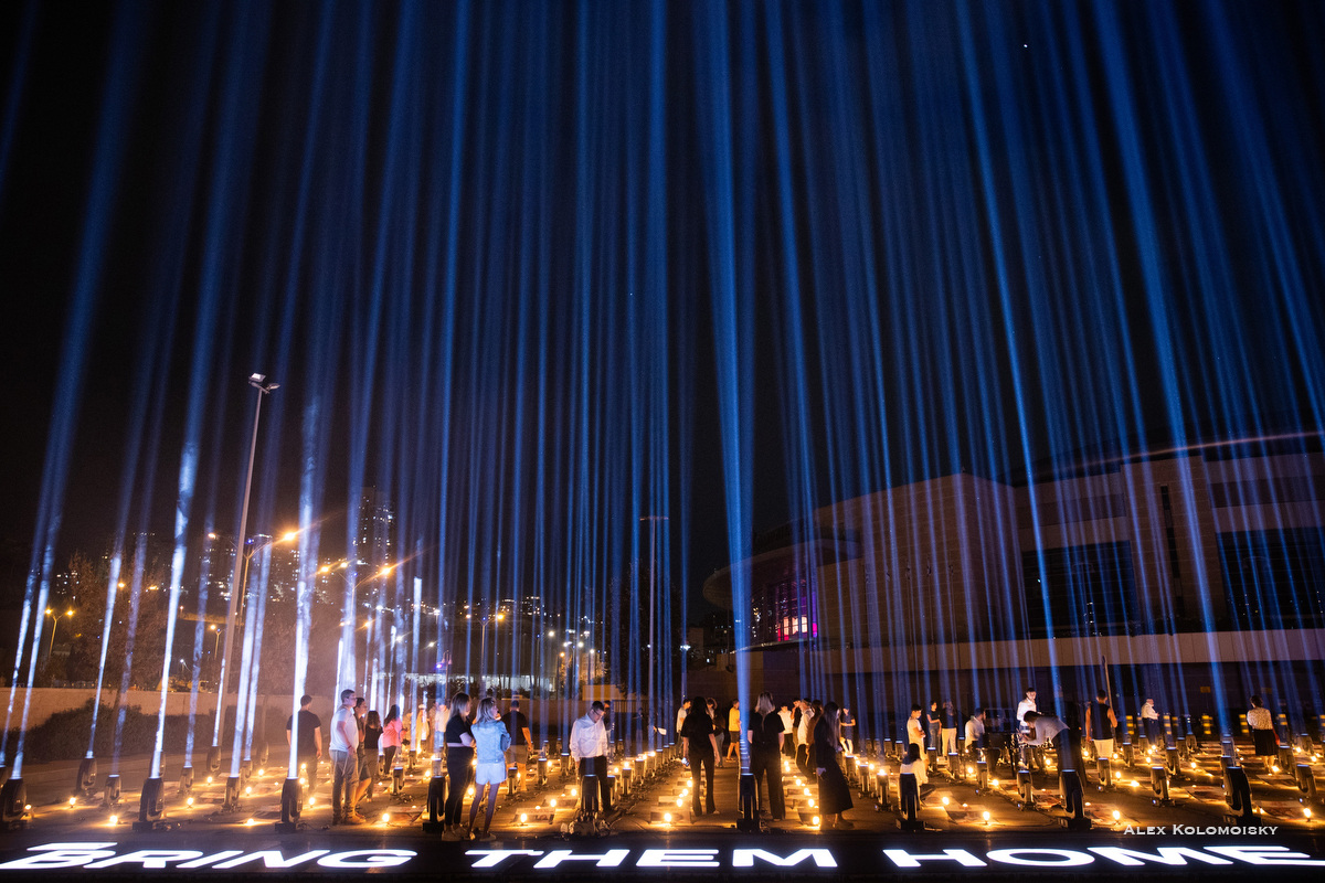 Сердце разрывается в клочья, слеза стекает по щеке, трудно представить, что это не сон. Семьи своих близких, похищенных боевиками Хамаса съехались в Иерусалим, где была представлена инсталляция "Свет надежды". 240 фотографий, 240 лучей надежды, 240 семей ждут своих детей, родителей, дедушек и бабушек, когда они вернутся домой.