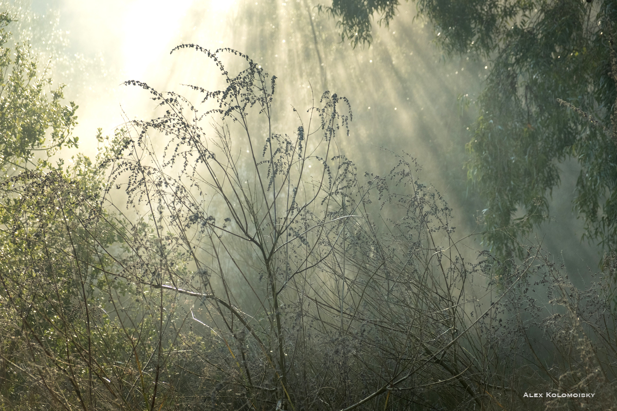 солнечные лучи пробиваются сквозь деревья и в это время природа просыпается.